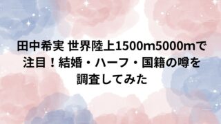 田中希実(たなかのぞみ)選手は日本女子中長距離界を代表するトップランナーです。世界陸上やオリンピックで見せる堂々とした走りはもちろん、普段の素顔とのギャップから「結婚しているの?」「ハーフなの?」と気になる人が続出しています。私もSNSでこ...