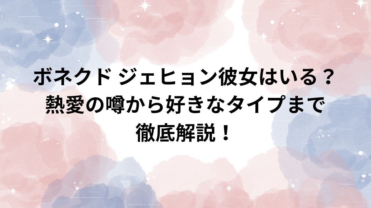 ボネクド ジェヒョン彼女は?熱愛の噂|現在の恋愛状況ジェヒョンは仕事に集中?