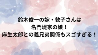 政界の名門として知られる鈴木家。実は鈴木俊一さん、政治一家に生まれた“超エリート政治家”であり、奥様は名門・堤家の娘さん。そして麻生太郎さんとは義理の兄弟という、まさに“政界サラブレッド”なんです。この記事では、★鈴木俊一さんの嫁・敦子さん...