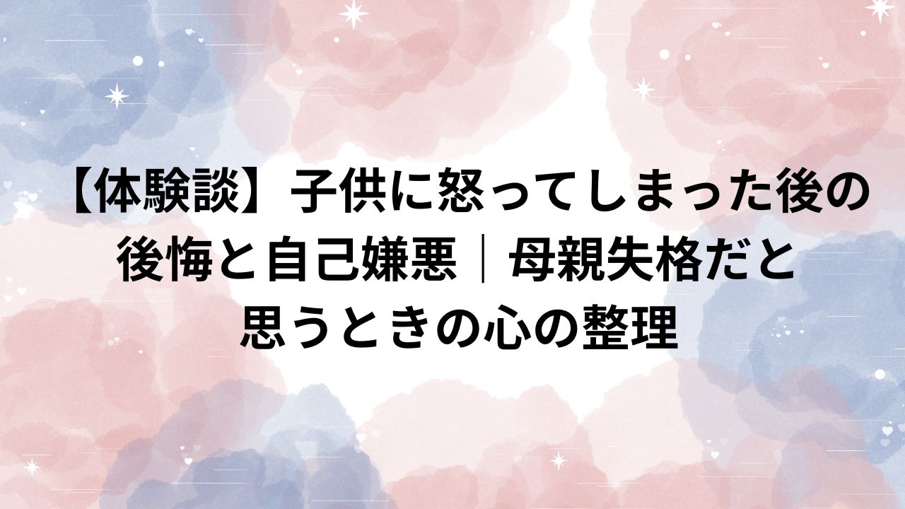 私自身も「子供に怒ってしまった…ひどいことを言ってしまった」と強く後悔し、自己嫌悪に押しつぶされそうになったことが何度も何度もあります。