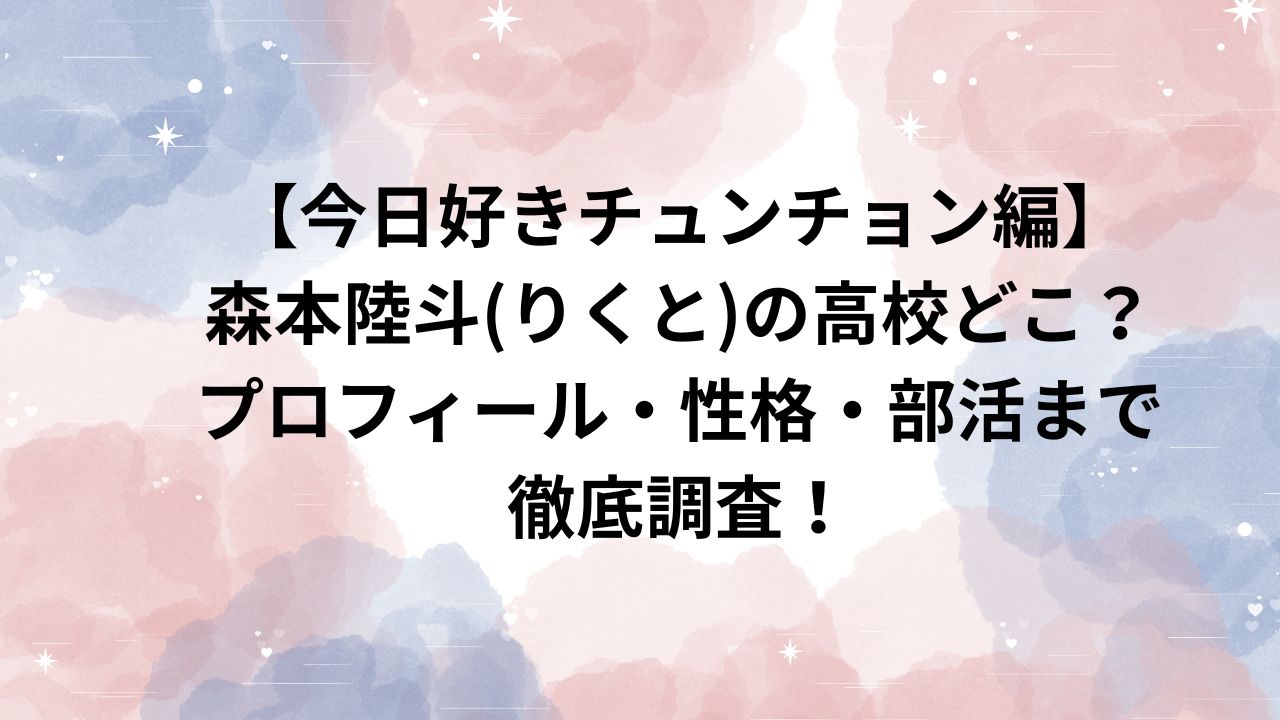 そこで今回は、今日好きりくと【森本陸斗】チュンチョン編高校プロフィールを中心に、