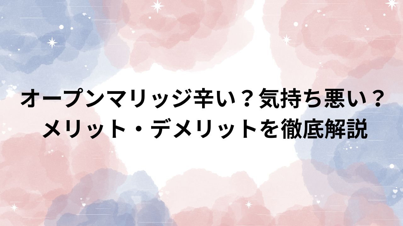 この記事では、オープンマリッジを「辛い」「気持ち悪い」と感じる理由、体験者の声、メリットやリスク、そして私自身の意見までまとめていきます。
