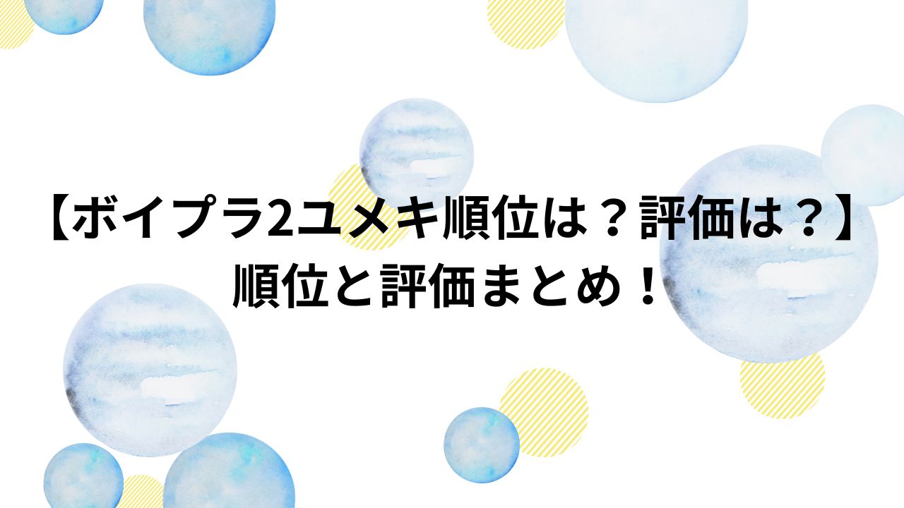 ボイプラ2ユメキ最新順位は?過去からの推移を解説
